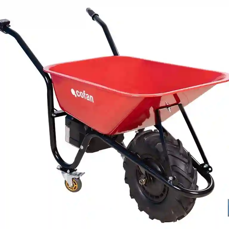 Carrinho de mão de obra a bateria concebido para o transporte eficiente e confortável de cargas pesadas na construção, jardinagem, agricultura e trabalhos de manutenção. Graças ao seu motor elétrico de 500 W integrado na roda principal, permite movimentar materiais com muito menos esforço do que um carrinho de mão tradicional.