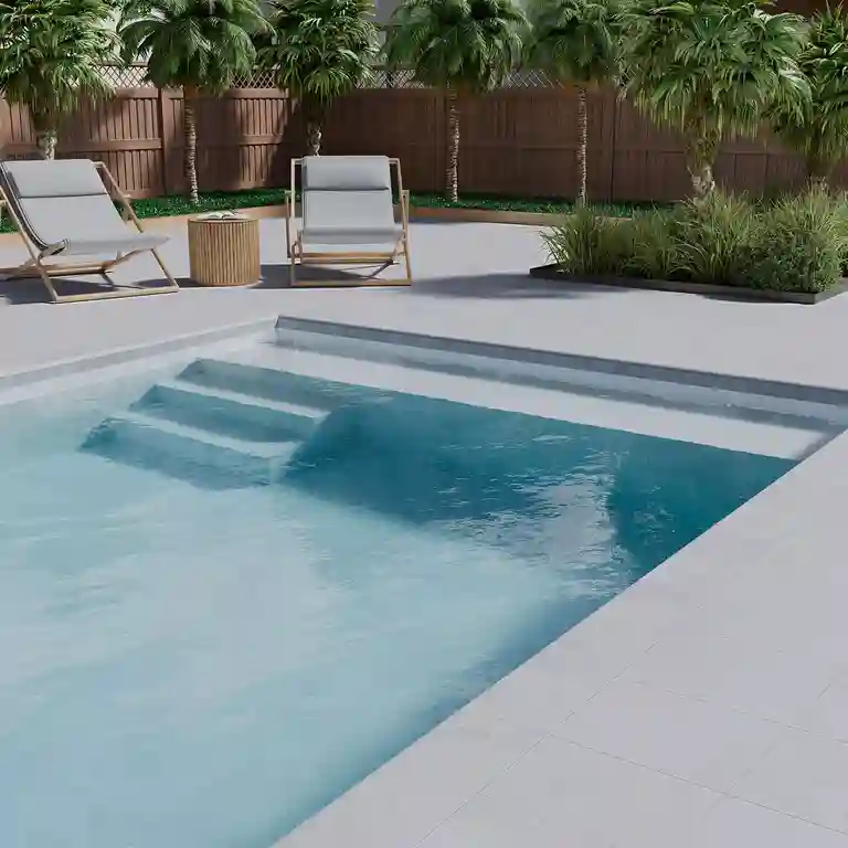 O formato 33×120 cm é ideal para degraus amplos e modernos. A frente boleada acrescenta suavidade ao contacto e segurança na utilização, além de valorizar o acabamento da escada com um detalhe visual bem resolvido.