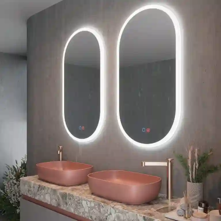 Espelho LED Canada – Elegância elíptica com iluminação intensa e tecnologia integrada