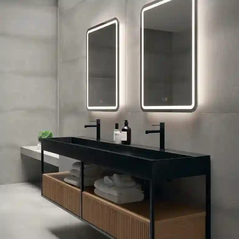O Espelho LED Grécia foi desenhado para transformar a rotina diária num momento de bem-estar e leveza. A sua iluminação frontal difusa, projetada através de jato de areia no vidro, cria um brilho suave e contínuo que transmite calma, sofisticação e equilíbrio visual.