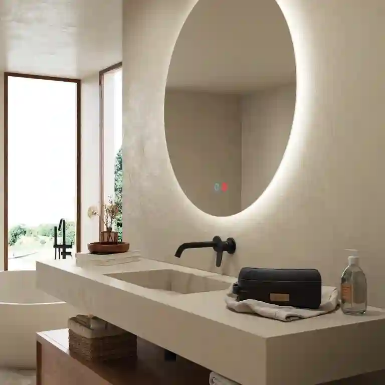 O Espelho LED Lisboa oferece o equilíbrio perfeito entre design e praticidade, elevando a sua experiência diária a novos níveis de sofisticação. Equipado com sensores On/Off e função anti-embaciamento, proporciona controle intuitivo para garantir uma visão clara e sem complicações, independentemente das condições.