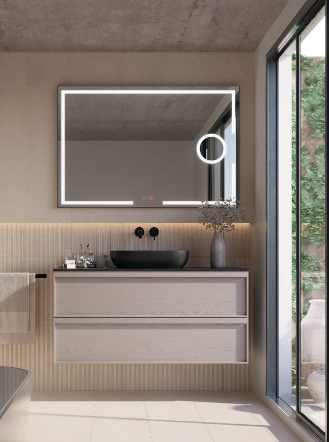 Equipado com sensor On/Off e sistema anti-embaciamento, o Malta garante praticidade total no uso diário. A superfície permanece sempre limpa e visível, mesmo após duches quentes ou em ambientes húmidos. A luz pode ser regulada em três temperaturas de cor — quente, neutra e fria — permitindo criar a atmosfera certa para cada momento do dia.