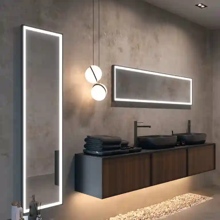 O Espelho LED New York foi pensado para quem procura um espelho de grande presença, tanto em funcionalidade quanto em design. Com 160×40 cm de altura, este espelho vertical adapta-se perfeitamente a casas de banho, halls de entrada, closets ou zonas de maquilhagem, oferecendo uma iluminação frontal suave e eficaz.