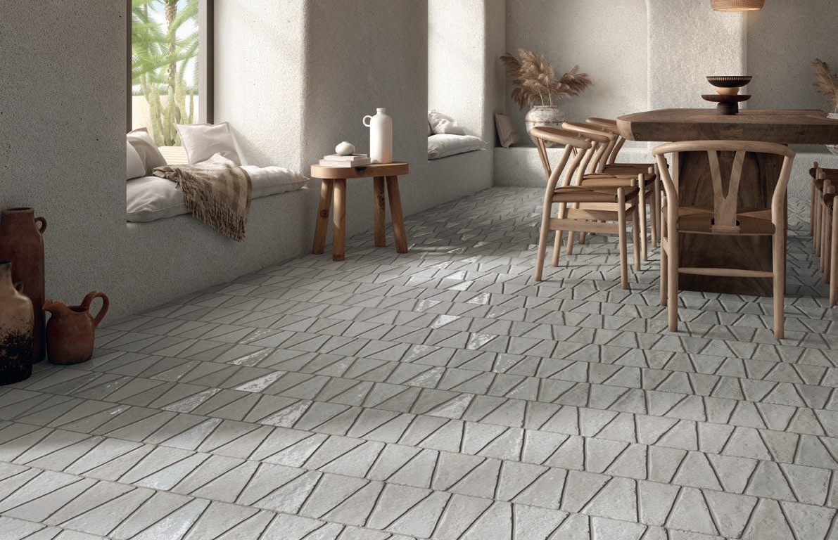 O pavimento cerâmico Alcudia design 40×60 é a escolha ideal para quem valoriza personalidade, criatividade e sofisticação num só revestimento. Com um padrão geométrico ousado e ao mesmo tempo delicado, este pavimento cerâmico transforma qualquer ambiente interior numa expressão única de design contemporâneo com alma artesanal. O seu formato 40×60 realça a imponência das peças, enquanto o desenho irregular, inspirado em mosaicos de pedra natural, confere movimento e textura ao chão, criando uma atmosfera acolhedora e elegante. O pavimento cerâmico Alcudia design 40×60 é perfeito para salas de jantar, halls ou espaços de convívio, onde o charme do detalhe faz toda a diferença.