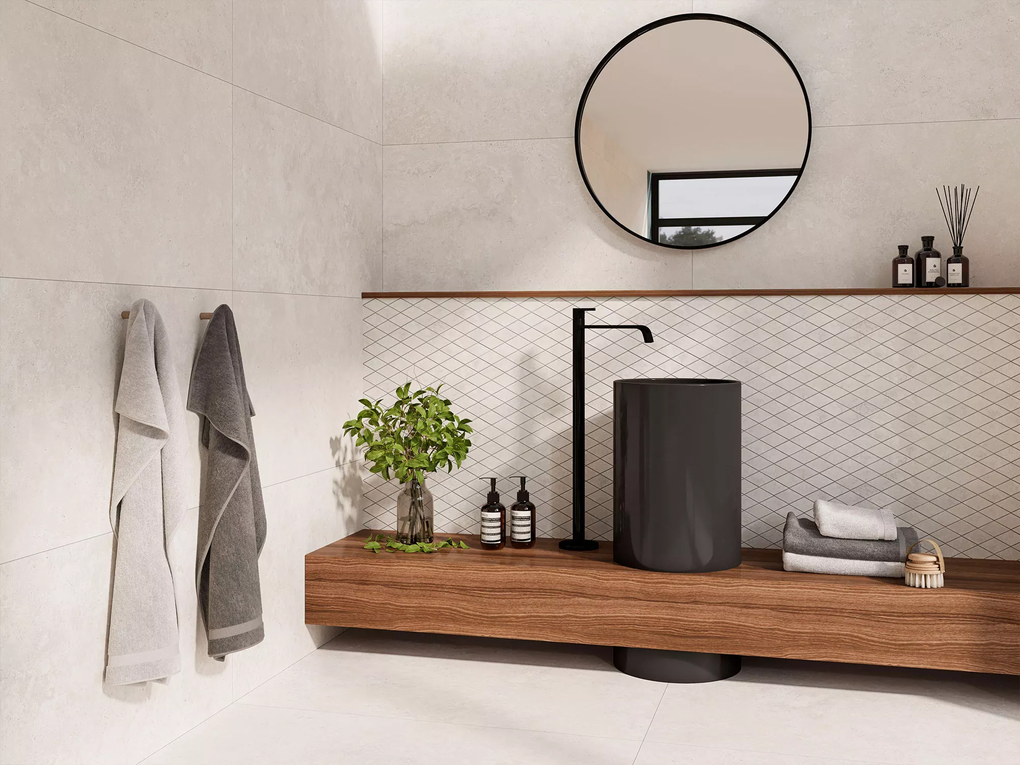 Com um efeito natural destonificado, o Ankara distingue-se pelas variações gráficas subtis que se desenrolam de forma orgânica em cada peça. Como as ondas que esculpem lentamente a costa, estas diferenças criam um movimento visual sereno, reforçando a sensação de autenticidade e equilíbrio. É um revestimento que parece vivo, natural — nunca repetido, sempre harmonioso.