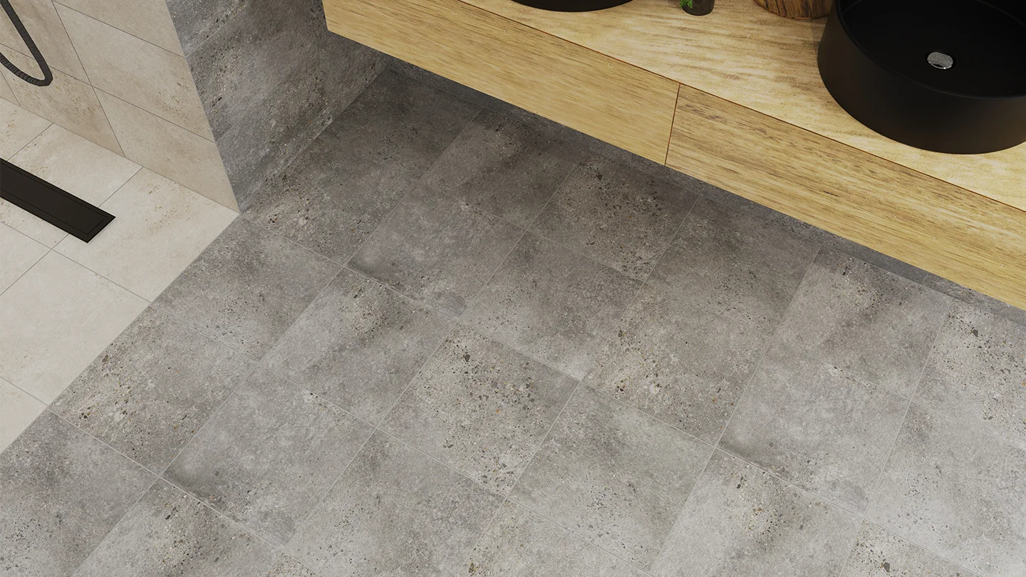O pavimento cerâmico Concrette mate 33,5×33,5 é a escolha ideal para quem valoriza o design urbano e minimalista aliado à funcionalidade. Inspirado nas texturas do cimento alisado, este revestimento traz a sobriedade das superfícies industriais para ambientes contemporâneos, com uma presença discreta e elegante. A sua tonalidade cinza suave com acabamento mate cria uma base neutra que valoriza qualquer proposta decorativa, oferecendo liberdade criativa tanto em interiores modernos como em espaços mais rústicos. Este pavimento adapta-se com naturalidade a casas de banho, cozinhas, salas ou zonas comerciais, oferecendo uma estética equilibrada e intemporal.
