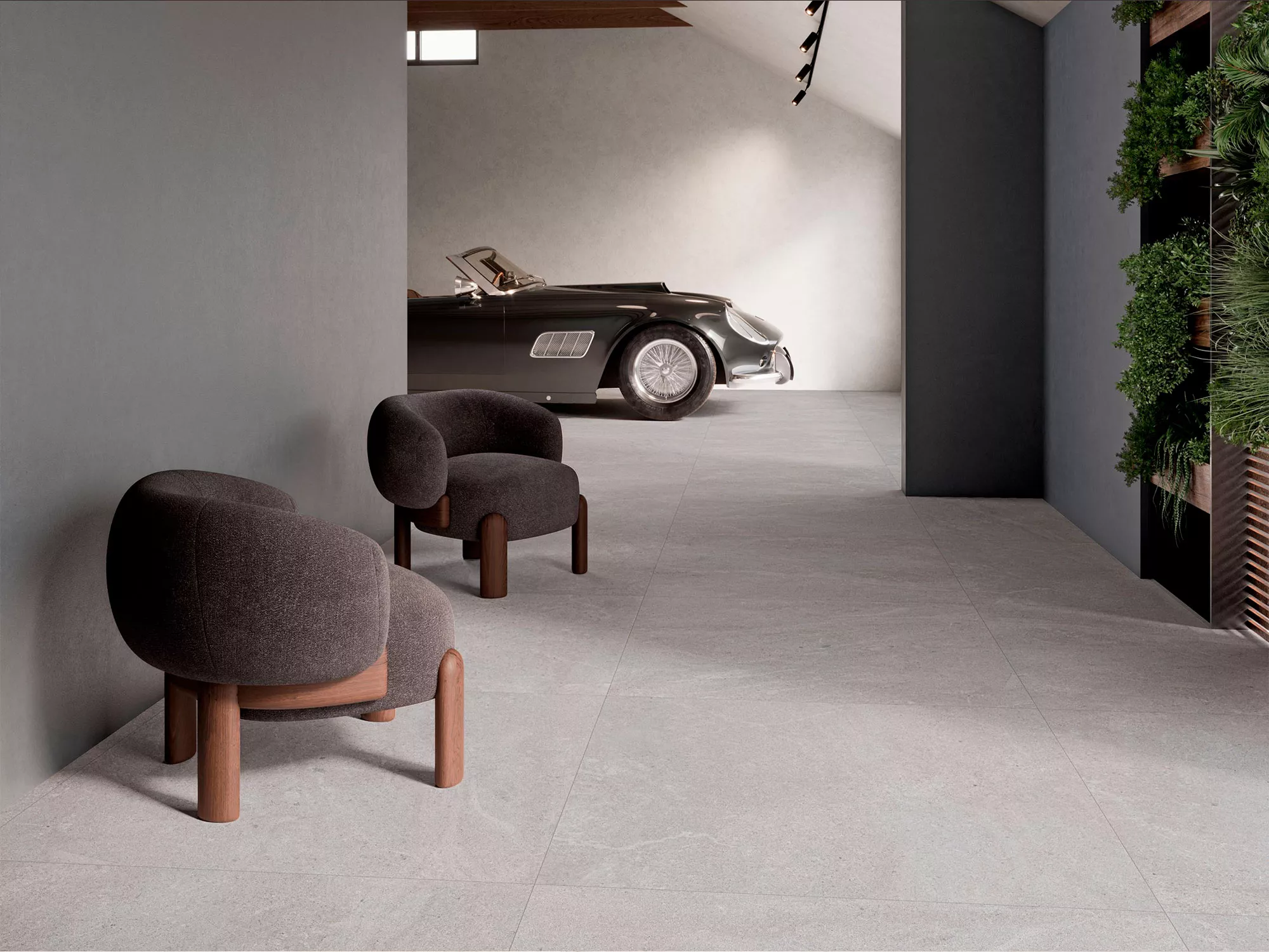 O Ultra revela a beleza da simplicidade com um acabamento subtil, como pedra esculpida pelo tempo, mas adaptada às exigências dos interiores modernos. Cada peça deste pavimento cerâmico Ultra parece fundir-se naturalmente com o espaço, criando superfícies contínuas, uniformes e serenas, onde os objetos decorativos ganham destaque e a luz se distribui sem esforço.