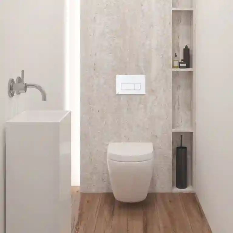Com sua fina espessura, a placa de descarga acrescenta um toque de sofisticação ao ambiente da casa de banho. O design minimalista não apenas economiza espaço visualmente, mas também confere um visual moderno e limpo ao seu espaço íntimo.