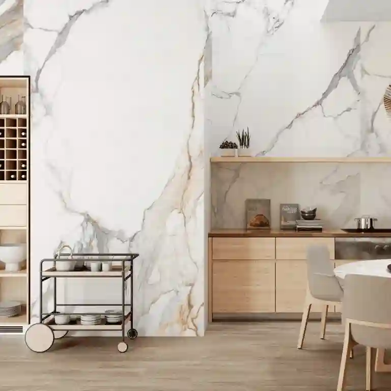 Seja num projeto residencial ou comercial, o Revestimento 120×260 Calacatta Bellissimo combina a beleza intemporal do mármore com a praticidade da cerâmica, oferecendo uma solução que alia design, durabilidade e sofisticação.