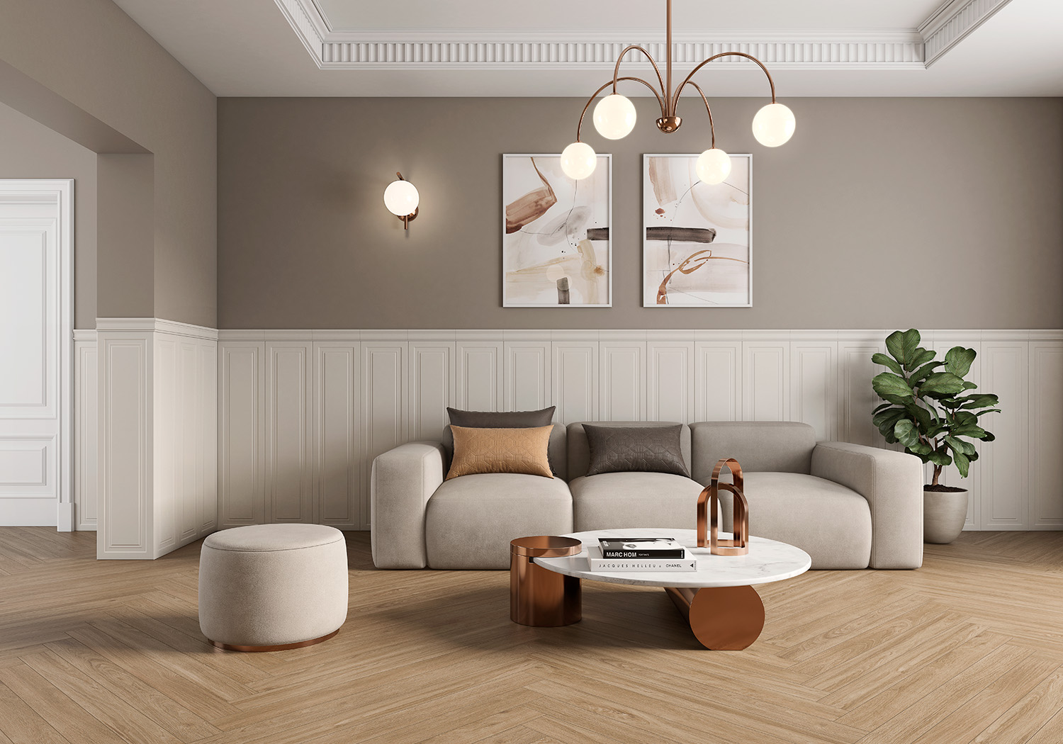 O revestimento cerâmico Boiserie 30×120 é uma ode ao requinte clássico reinterpretado para os interiores contemporâneos. Como molduras esculpidas no tempo, as suas linhas elegantes conferem profundidade visual, ritmo arquitetónico e uma sofisticação silenciosa que transforma qualquer parede numa narrativa estética. Cada peça carrega consigo uma textura subtilmente marcada, reminiscente da madeira talhada à mão, agora eternizada em cerâmica de alto desempenho.
