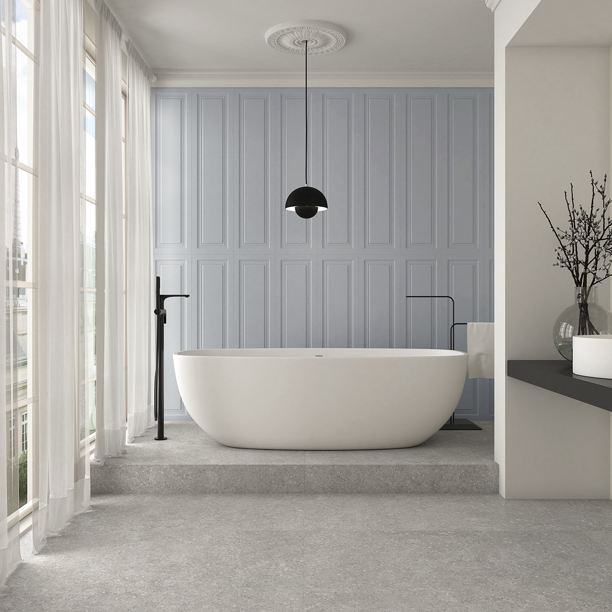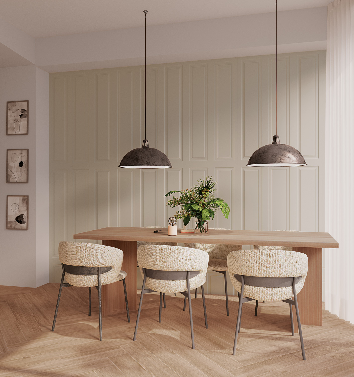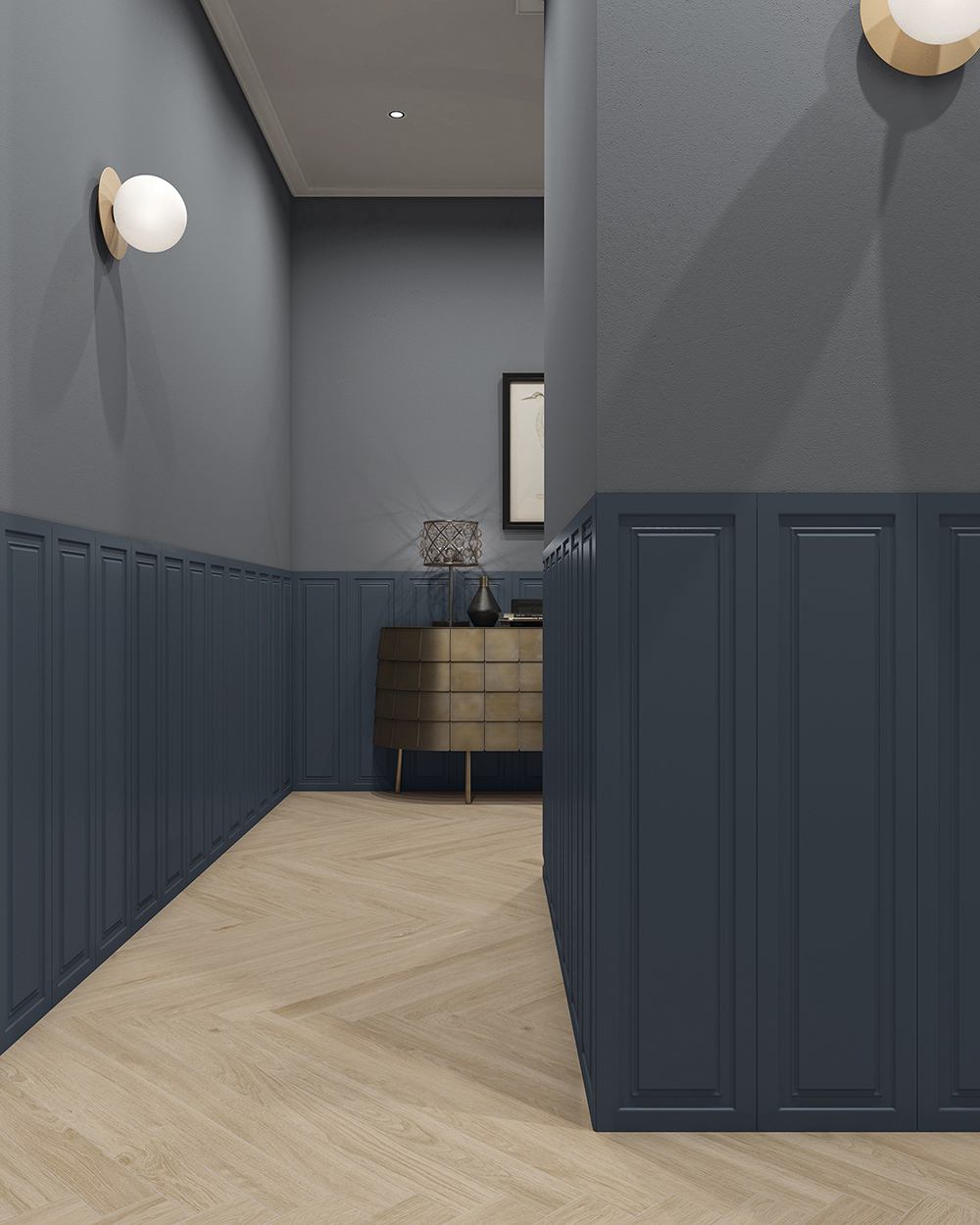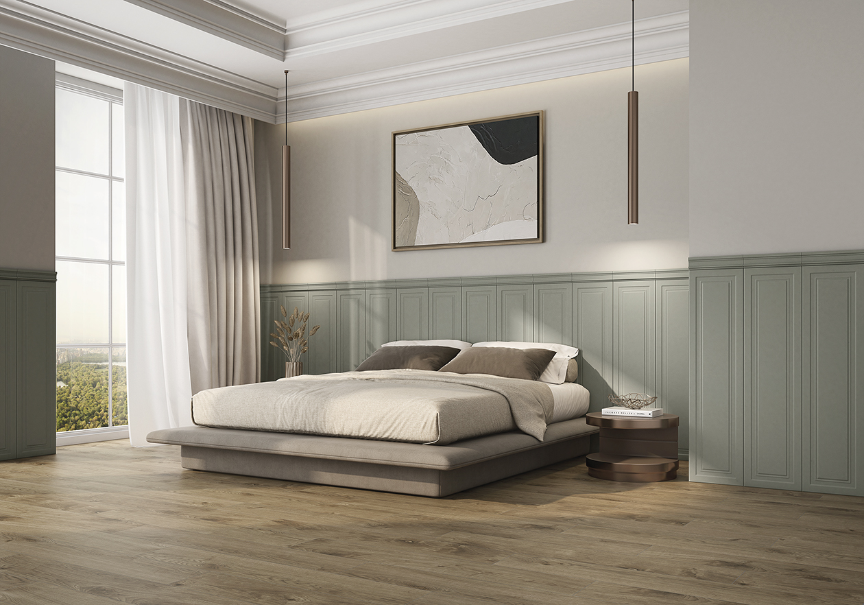 Neste formato alongado, o revestimento cerâmico Boiserie 30×120 cria impacto visual mesmo em ambientes minimalistas. Seja em corredores estreitos, quartos refinados ou salas amplas, este revestimento envolve os espaços com um charme equilibrado — entre o clássico francês e o moderno escandinavo. As tonalidades disponíveis são cuidadosamente selecionadas para harmonizar com diferentes estilos de decoração, permitindo composições versáteis com mobiliário claro, texturas naturais ou metais escovados.