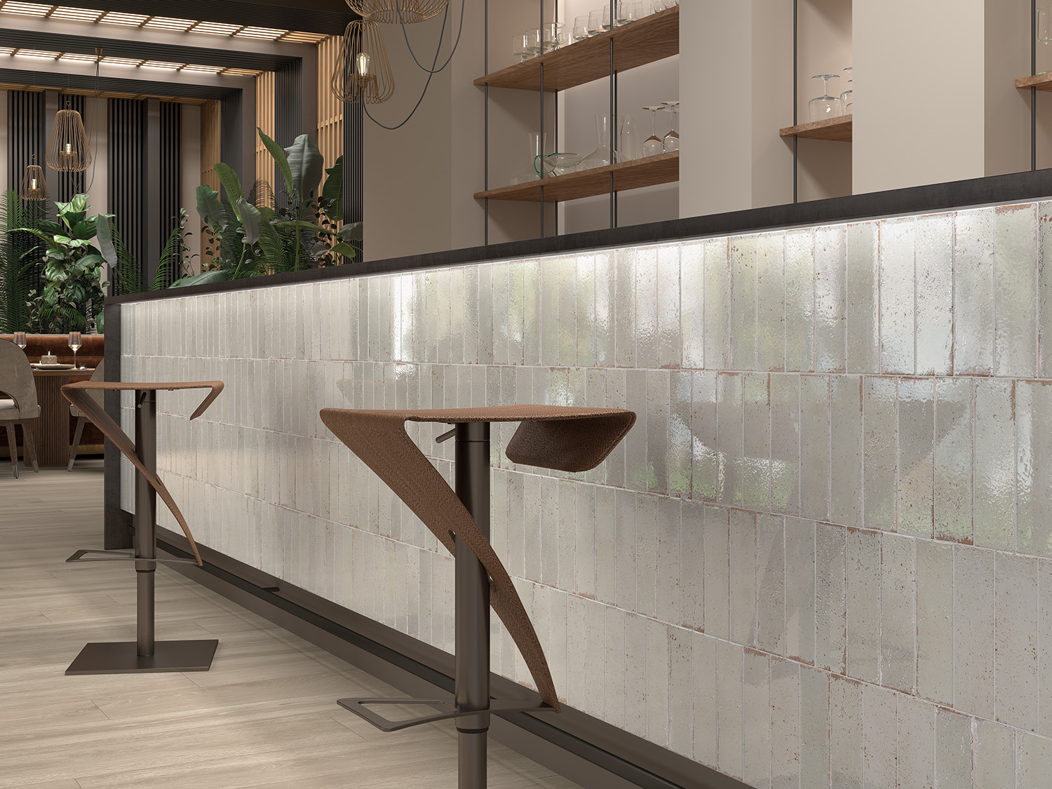 Seja em ambientes boho-chic, clássicos contemporâneos ou no revivalismo dos anos 70, o revestimento cerâmico Musaé uma peça que se encaixa no coração das tendências atuais. A sua textura vidrada aproxima-se do universo da cerâmica artesanal, resgatando o valor do feito com alma. E, como um detalhe de moda, eleva o espaço — como um acessório de autor num look neutro, criando impacto com simplicidade.