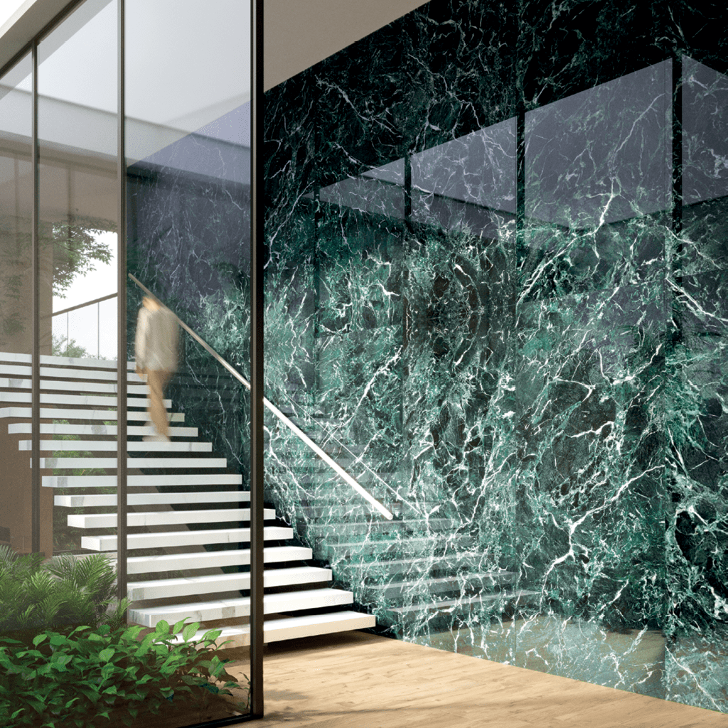 Cada lâmina do Alpi é meticulosamente trabalhada para capturar os detalhes únicos de uma paisagem natural. O jogo harmonioso entre o verde profundo e os veios brancos delicados confere a esta peça uma presença marcante e intemporal, evocando uma conexão intrínseca com a essência da terra. O formato grandioso de 120×260 cm assegura uma continuidade visual impressionante, com poucas juntas e um acabamento impecável que amplia os espaços e valoriza cada detalhe.