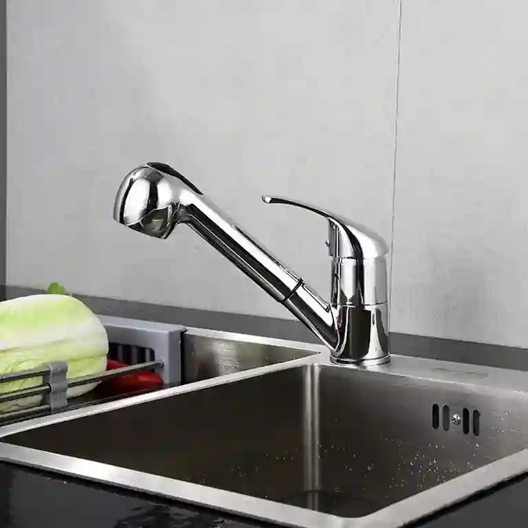 O manípulo ergonómico assegura um controlo intuitivo da temperatura e do caudal de água, tornando a experiência mais fluida. A presença da função de jato extraível acrescenta ainda mais flexibilidade, permitindo alcançar áreas difíceis ou realizar tarefas específicas com maior precisão.