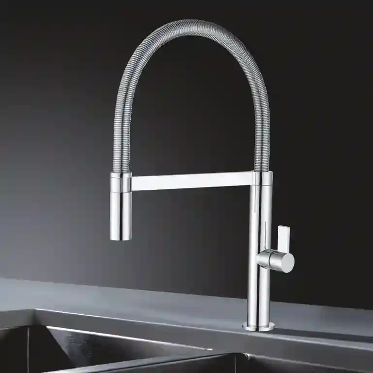 A ergonomia do manípulo lateral garante um controlo intuitivo da temperatura e do caudal de água, tornando o uso diário fluido e agradável. A flexibilidade da bica não só facilita o manuseamento, como também confere um toque contemporâneo ao espaço, valorizando cozinhas modernas, minimalistas ou industriais.